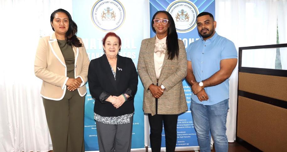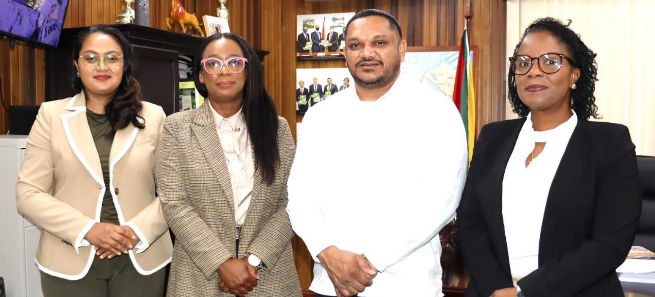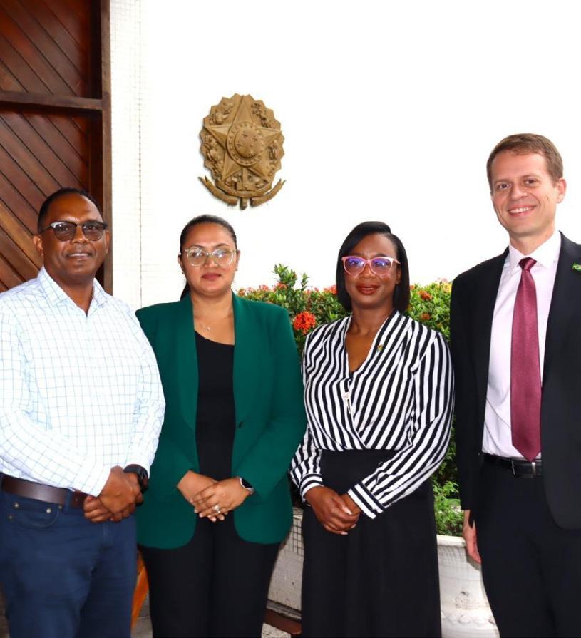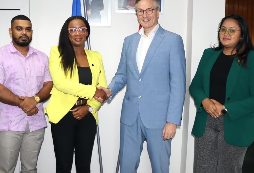 The Georgetown Chamber of Commerce and Industry (GCCI) recently hosted the newly appointed Senior Commercial Officer of the U.S. Embassy, Mr. Bruce J. Ellsworth, for a highlevel meeting focused on strengthening partnerships and identifying new opportunities for collaboration between the local private sector and U.S. entities. Mr. Ellsworth, who was accompanied by Commercial Specialist, Ms. Amanda Edmondson, and Commercial Assistant, Ms. Tocoma Alexis, met with GCCI President, Mrs. Kathy Smith, Junior Vice President, Mr. Brian Edwards, and Executive Member and Immediate Past President, Mr. Kester Hutson, at the Chamber’s headquarters on September 30.