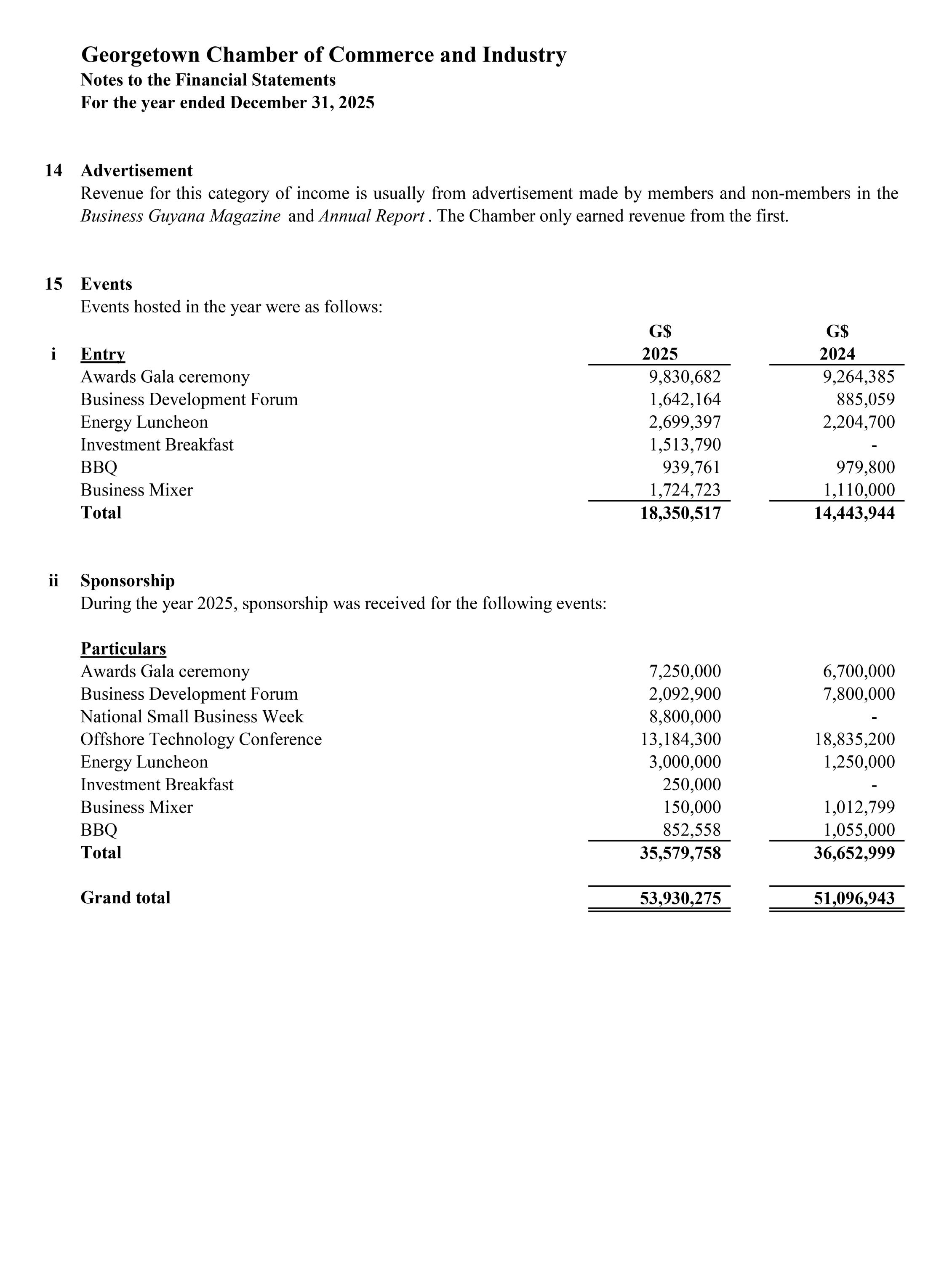 This improvement highlights the Secretariat’s efforts to strengthen financial controls while maintaining the Chamber’s commitment to supporting its membership and expanding its activities. Overall, gross revenue increased from $105.86 million in 2024 to $123.71 million in 2025, representing an increase of $17.85 million or 16.84%. This growth was driven by strong performance across several of the Chamber’s key initiatives and events, which continue to serve as important platforms for engagement with the private sector.