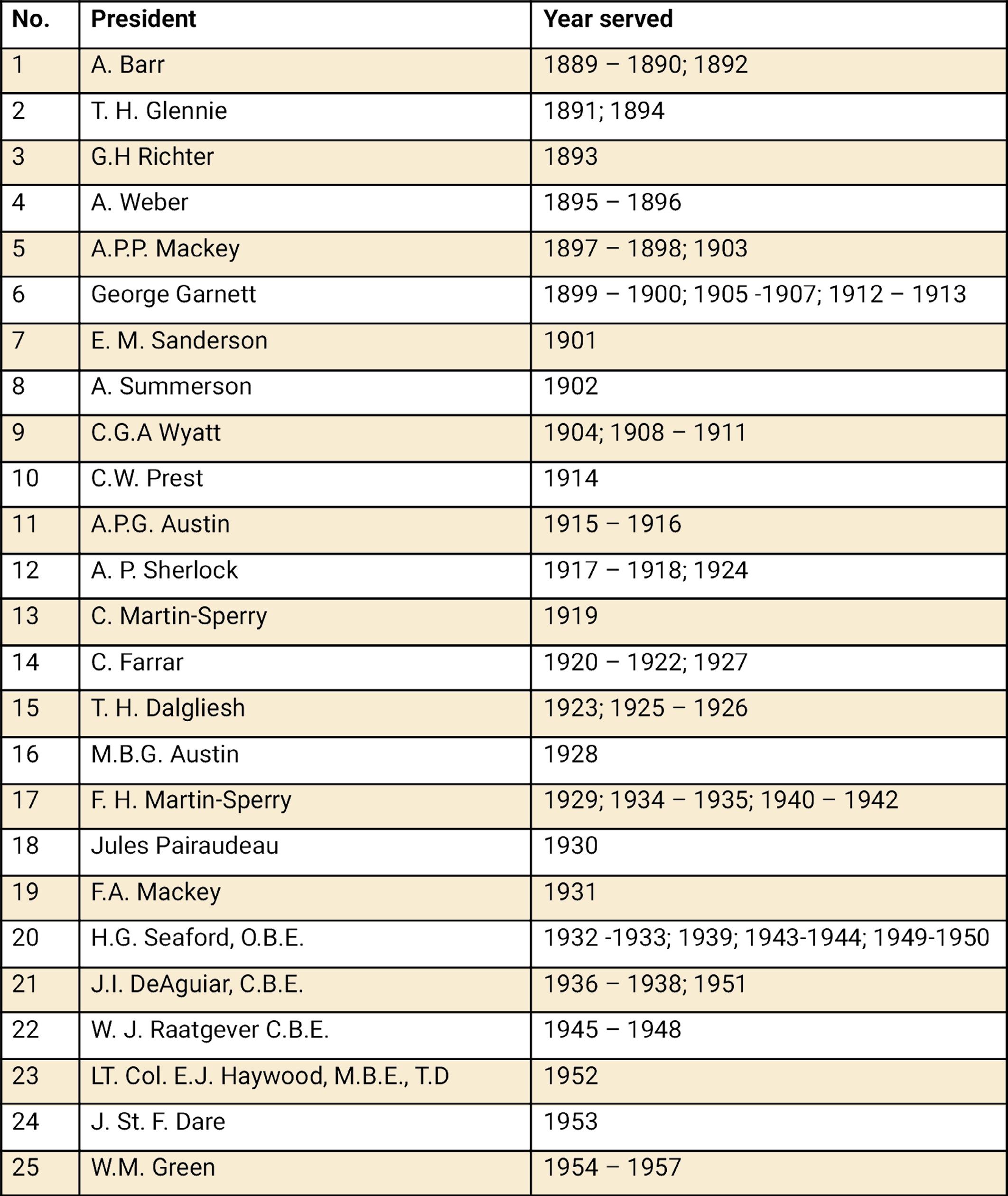 List of Past Presidents from 1889-2025