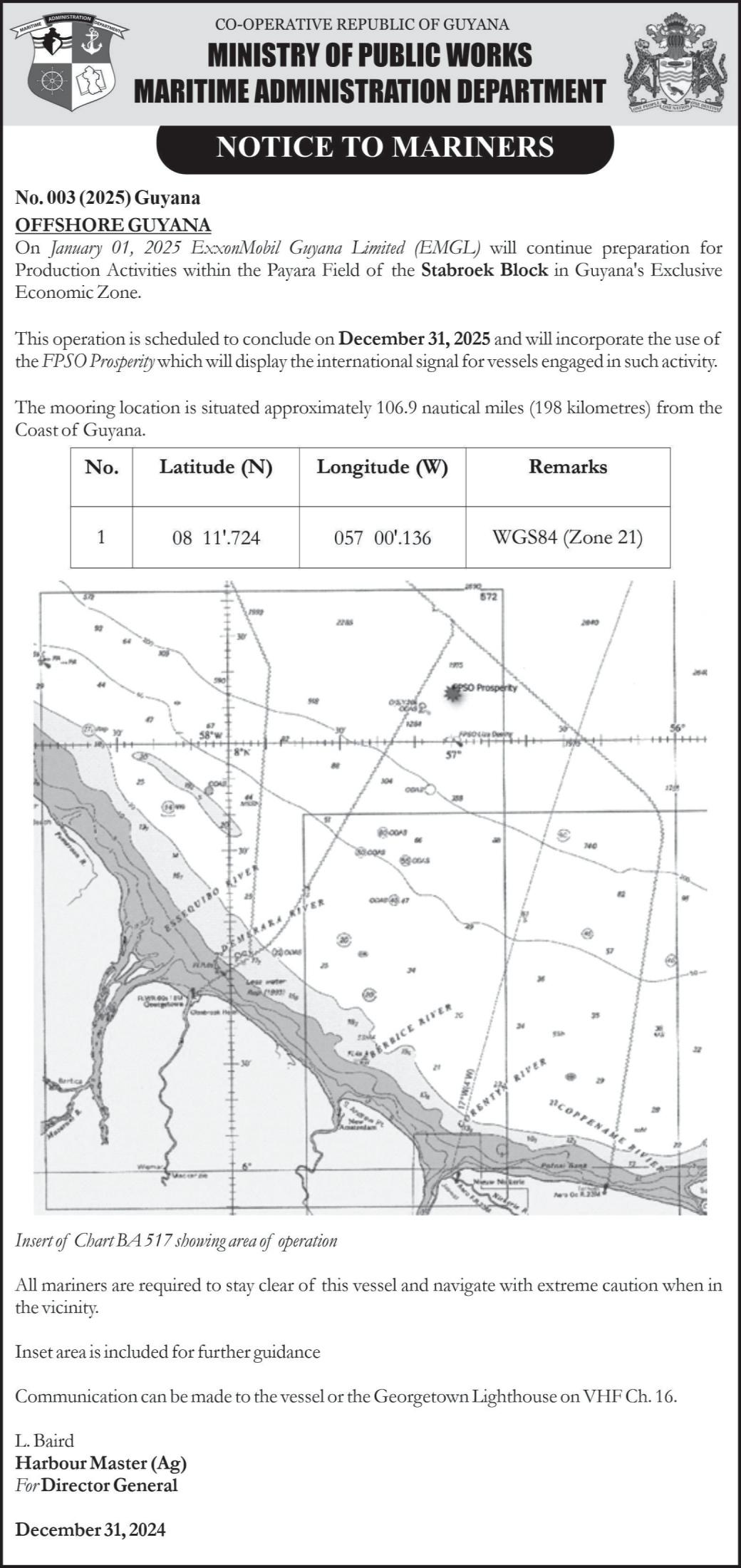 Itisimportanttonotethat the Gas-to-Energy (GTE) project also comprises of a 12-inch diameter pipeline being developed by the Stabroek Block operator, ExxonMobil Guyana Limited. Exxon previously saidthestructureisexpected to cost US$1B. Guyana is also expected to repay the contractor for the pipeline overa20-yearperiod.