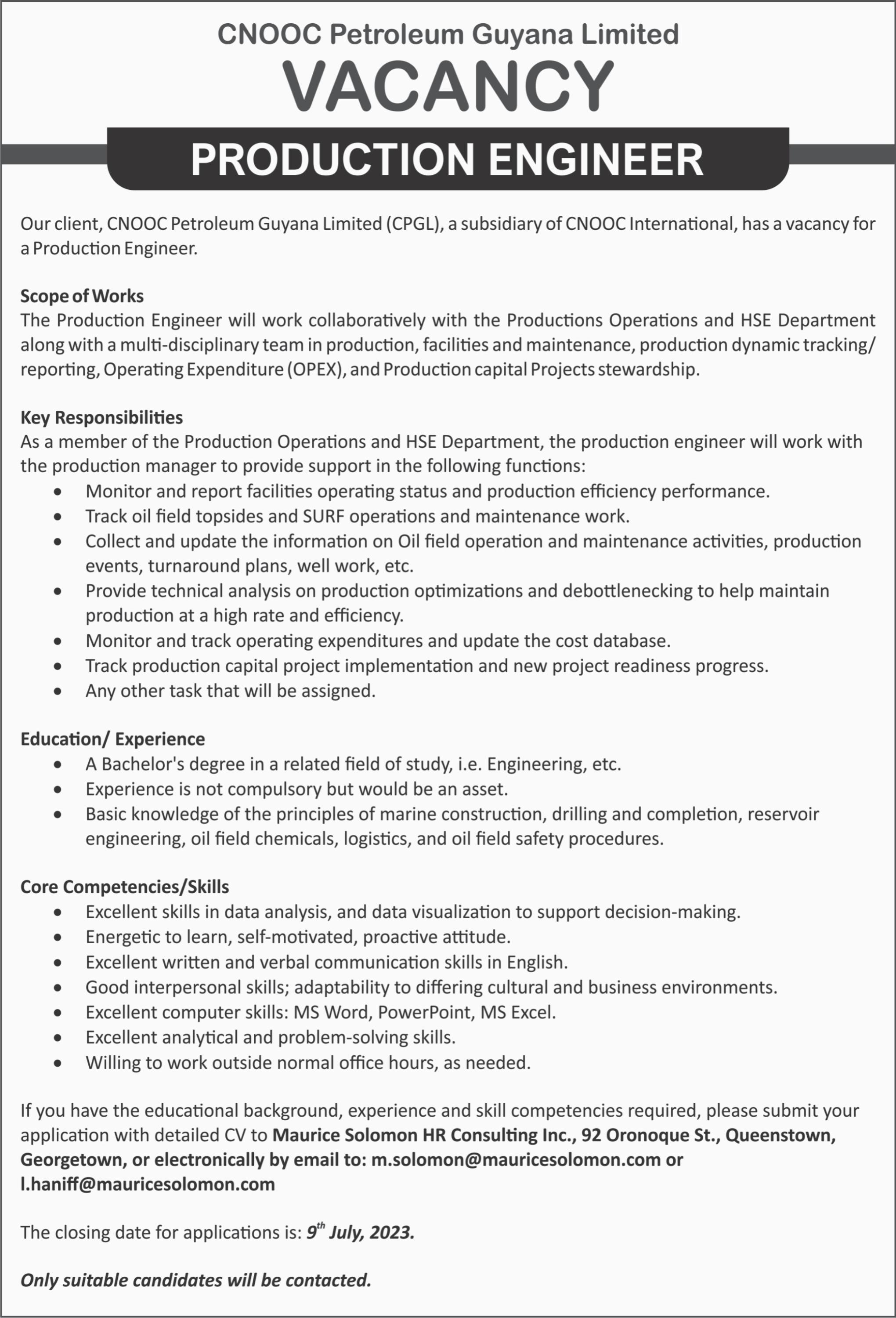 Last minute queries can be directed to Niketa Ross 662-4668, Ivan Dipnarine 331-0316, Basil Bactowar 6617815, Fazal Habibulla 6577010 or Isaac Dalloo 6890629.