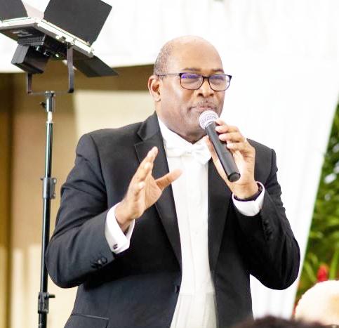 Minister Charles Ramson Jr. shares a light moment with the attendees.