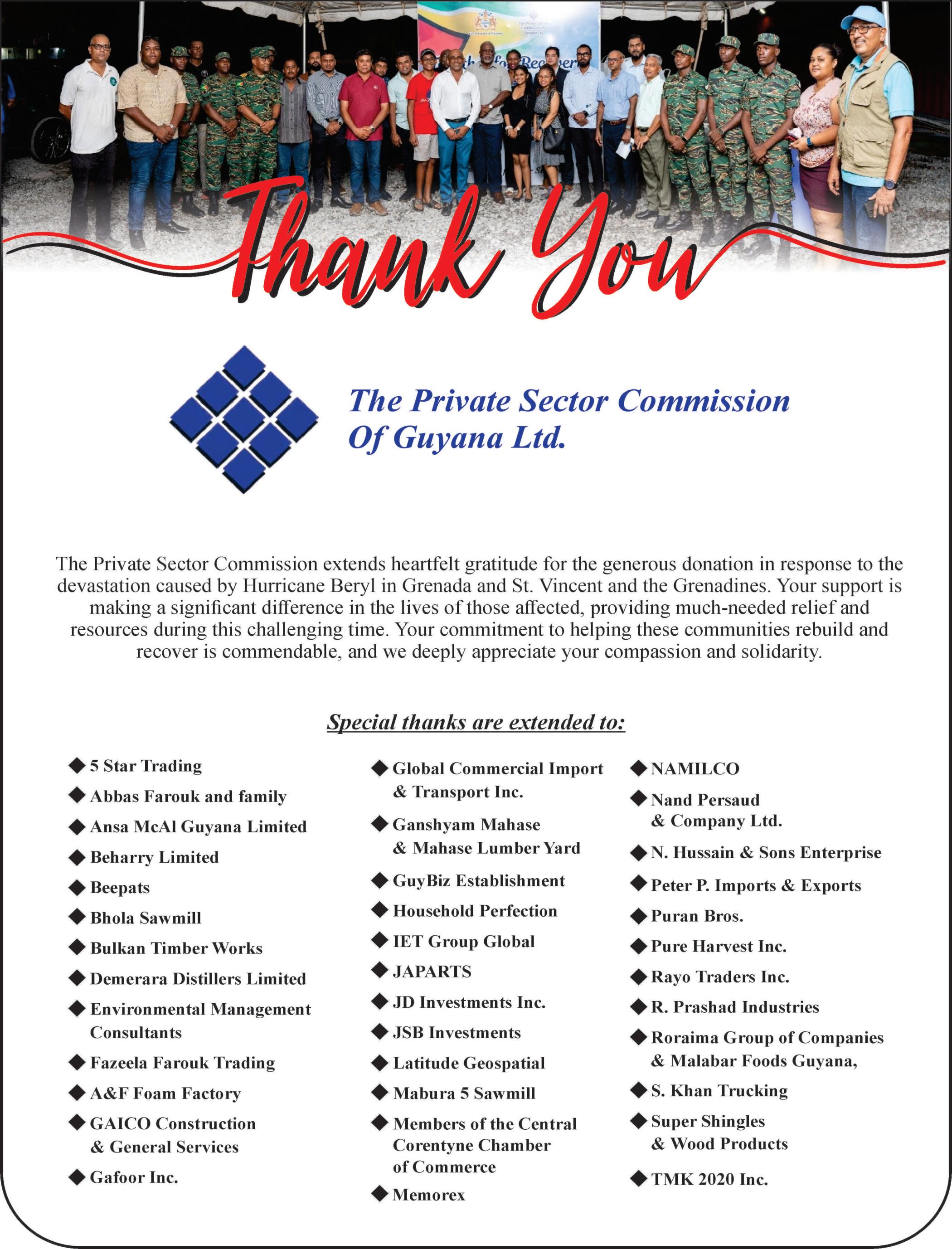 Kares Engineering, Banks DIH, Star Rentals, Ministry of Culture, Youth and Sport, Montra Restaurant and Longue, Ministry of Housing and Water, Premier Insurance, Regal Stationary & Computer Centre, ENet, Avinash Contracting and Scrap Metal Inc., Demerara Mutual Insurance, Massy Distribution,RS53Restobar &Lounge,JacobsJewellery & Pawn Shop, and First ChangeBuildersInc.arethe