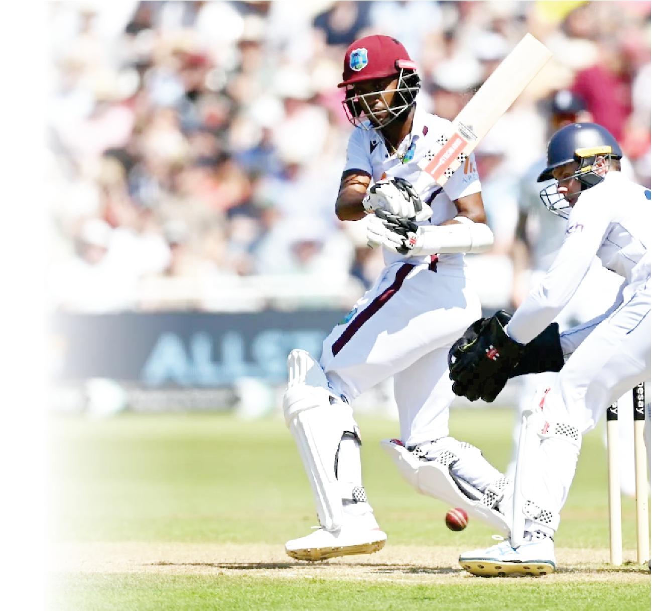Replying to England’s Then, on the stroke of dismissed by Chris Woakes 416 all out on day one, the lunch, McKenzie played an in the 75th over for 120 off West Indians reached 351-5 ill-advised shot off the 171balls. off84oversatstumpsonday bowling of Bashir to fall for “It was important we put two, trailing their English 11andleavethetourists84-3 our heads down and took counterpartsbyjust65runs. inthe25thover some info from the England O p e n e r s K r a i g g The post-lunch session first innings,” Hodge told Brathwaite and Mikyle then saw the Dominican pair Sky Sports at the end of the Louis got proceedings off to of Hodge and Athanaze day a good start for the West brilliantly navigating some “We made use of a good Indies with a 53-run opening probing bowling from the batting track It feels partnership despite a testing hosts. amazing[tomakeacentury], spell of bowling from Mark Hodge did have one it is always good to Wood which saw him record reprieve when he was contribute to the team, a delivery at 97.1 miles per dropped by Joe Root off the especially coming off the hour bowlingofWoodinthe42nd first Test when we didn’t do Thatpartnershipendedin over sowellasabattingunit. the 15th over when Louis The pair carried on to put On the partnership with went caught off the bowling on 175 for the fourth wicket Athanaze,headded:“Facing of off-spinner Shoaib Bashir b e f o r e A t h a n a z e [Mark] Wood, it is not every for21. unfortunately fell 18 runs day you face a guy who