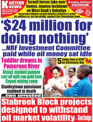 Kaieteur News Printed and Published by National Media & Publishing Company Ltd. 24 Saffon Street, Charlestown, Georgetown, Guyana. Publisher: GLENN LALL-TEL: 624-6456 Editor: Sharmain Grainger Tel: 225-8465, 225-8491. Fax: 225-8473, 226-8210