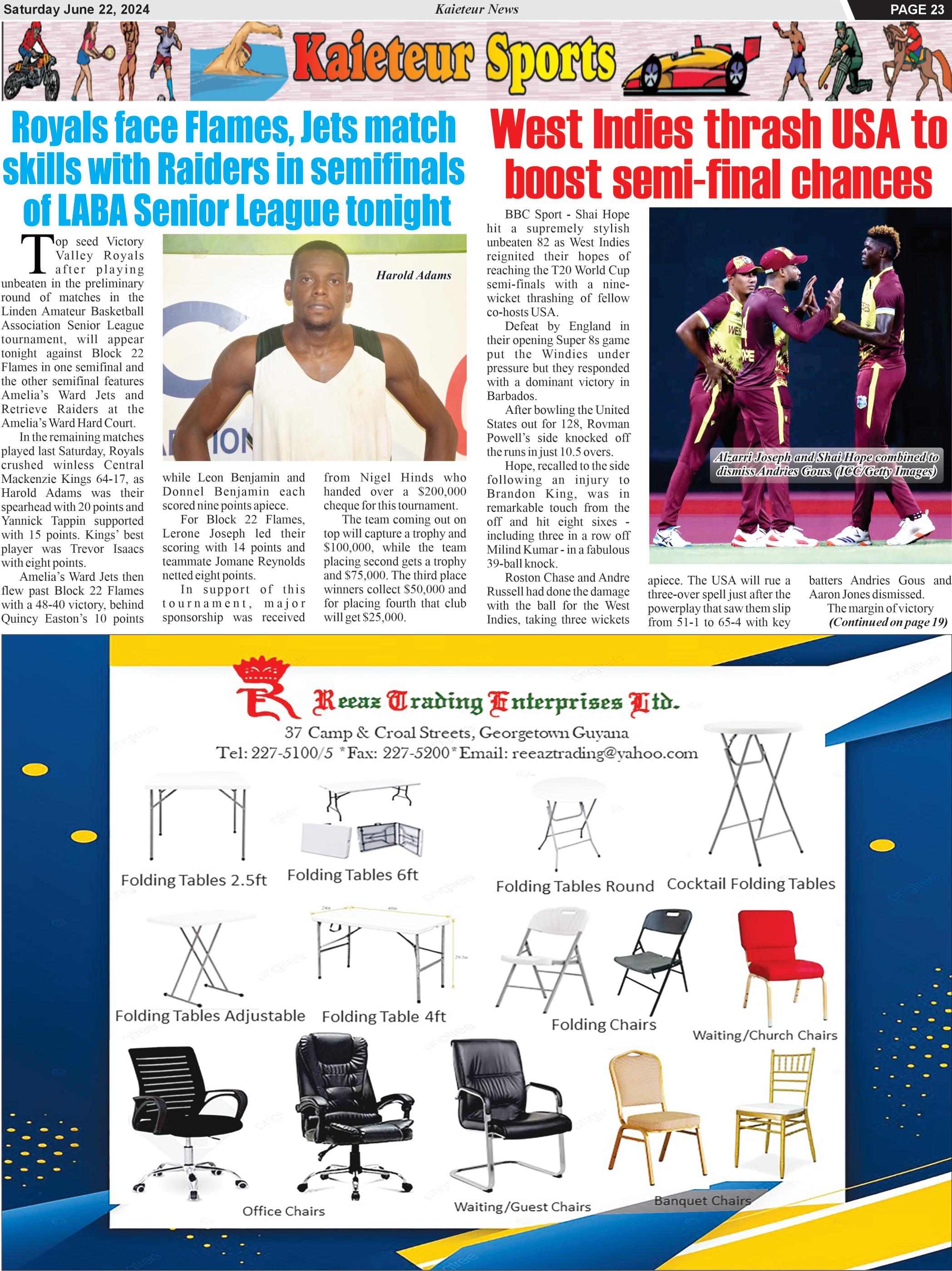 Thechampionshipmatch is scheduled for Sunday, June 23, where the winners will be crowned The tournament is sponsored by MVP Sports, Busta Soft Drink, and Turbo Energy Drink and is coordinated by Neil Henrito of DC Caesar Fox Secondary School with support from the Petra Organisation.