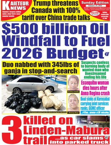 June 23, 2012 - Vol. 6 No. 24 - Price $80 kaieteurnews@yahoo.com Website:http://www.kaieteurnewsonline.com Guyana’s largest selling daily & New York’s most popular weekly