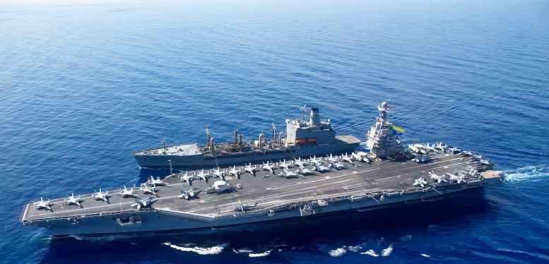 The Ford carrier, which includesanuclearreactor,canhold more than 75 military aircraft, including fighter aircraft like the F-18SuperHornetjetsandtheE-2 Hawkeye, which can act as an earlywarningsystem.