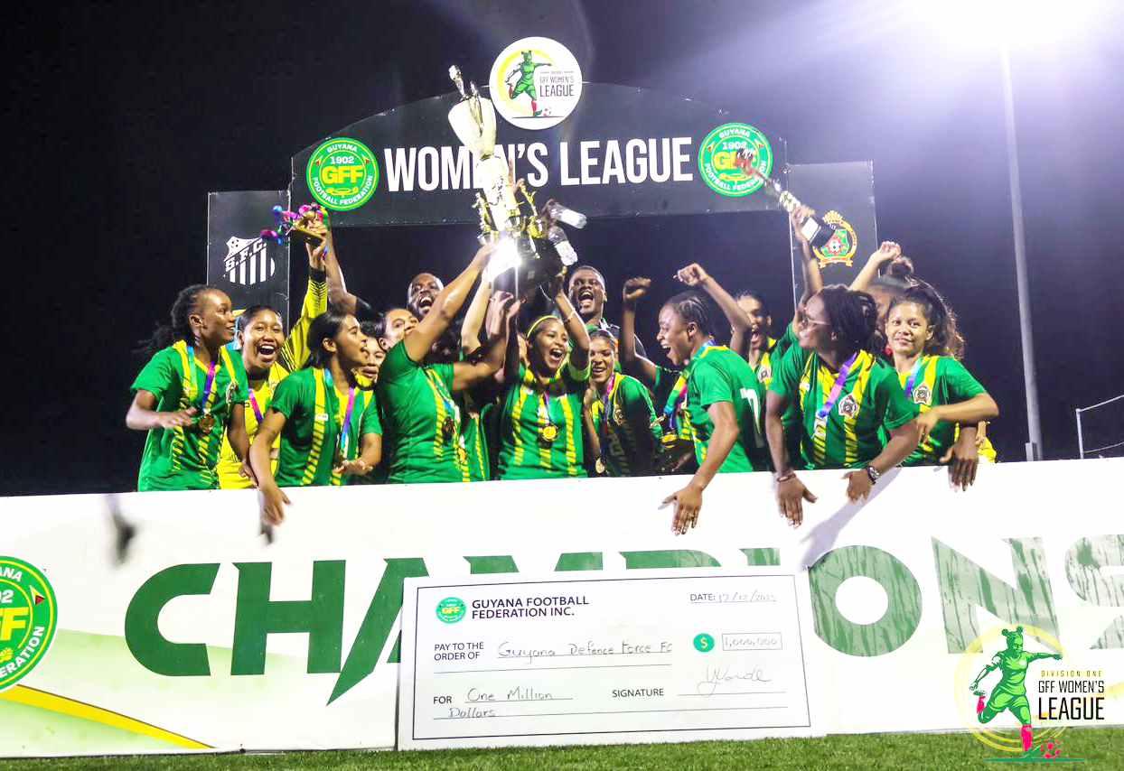 The Guyana Defence Force’s (GDF) Women’s Football team were the center of attentiononFridayeveningasthechampions of the Women’s Division One League officially became the first Women’s football team in Guyana to take home a $1M grand prize.