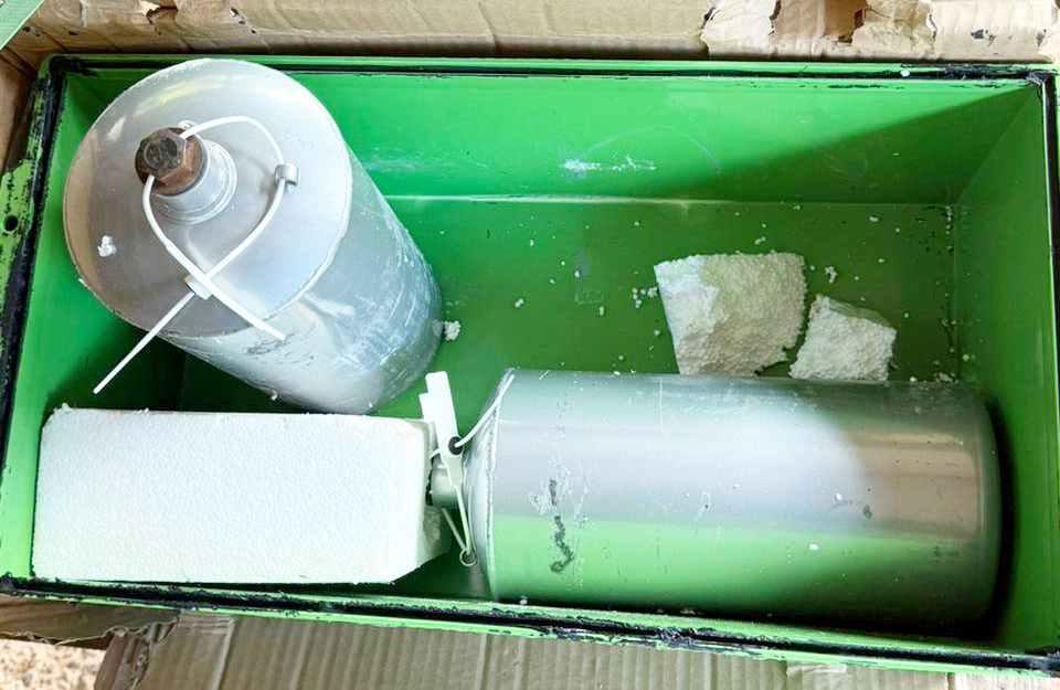 During the search a quantity of suspected mercury was discoveredconcealedinsidetwosolarbatteries.
