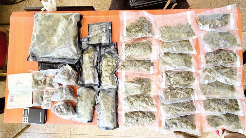 A29-year-oldmanwasarrestedon Friday after he was found with 1,182 grams of cannabis in his haversack at Bamboo Landing, North West District,RegionOne.