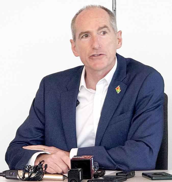 President of ExxonMobil Guyana Limited, Alistair Routledge responding to questions at the company’s recent company’ press conference.