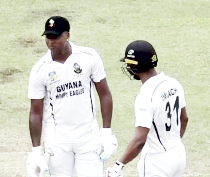 Earlier, Imlach and Alimohamed owned the rainstruckdayduringtheircentury partnershipwhichrevivedthe Eagles innings The pair playedanassortmentofshots afterovernightbatsmanRichie Looknauth(24)felltoShields, who seemingly looked to continuefromwhereheleftoff