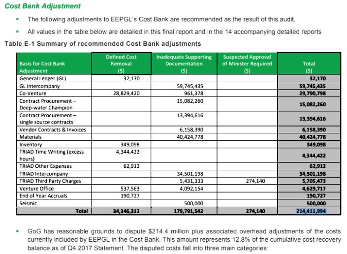 IHS-Markit, which reviewed some US$1.6B in expenses for Exxon advised theGoGthatsomeUS$214M was not billed correctly by theoperatorduringtheperiod 1999to2017.