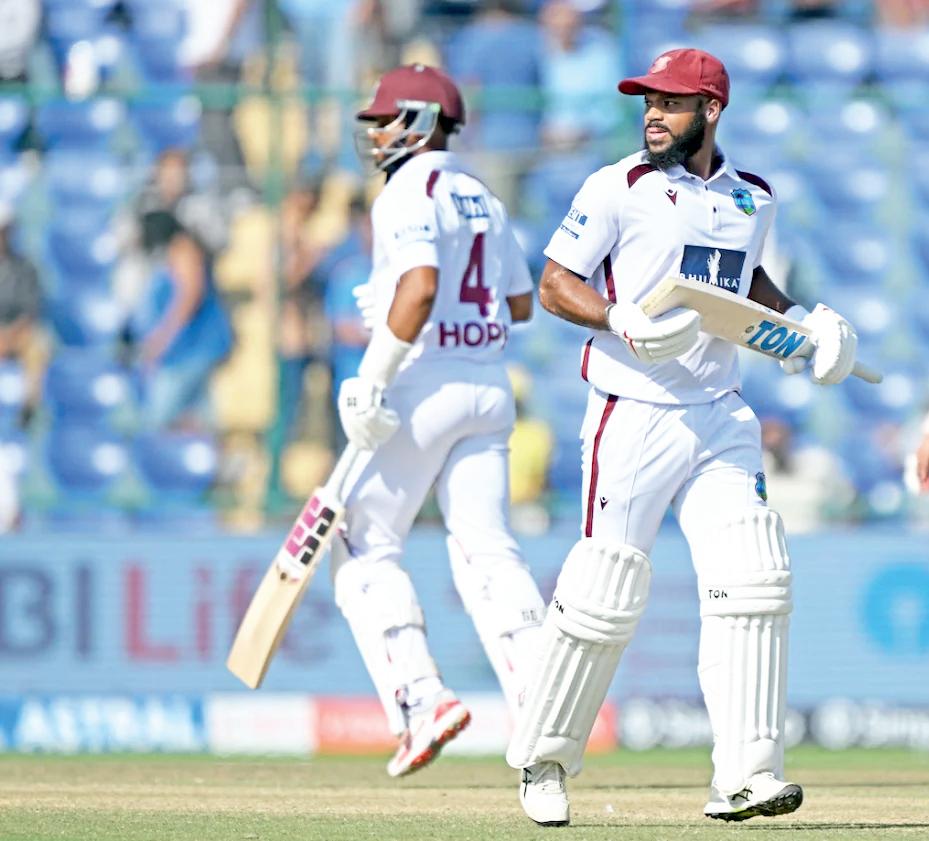 Scores: West Indies 248 (Athanaze41,Kuldeep5-82) and 173 for 2 (f/o) (Campbell 87*, Hope 66*) trail India 518 for 5 dec (Jaiswal 175, Gill 129*, Sai Sudharsan 87, Warrican 398)by97runs.