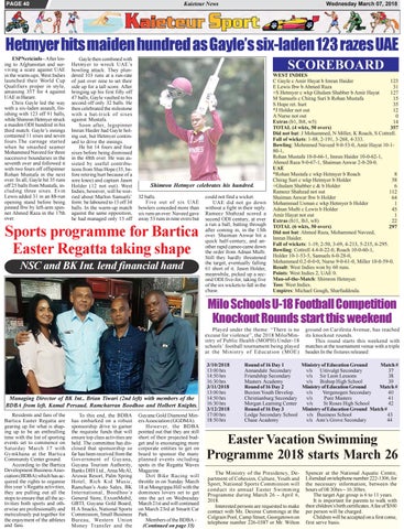 Guyana Gold Diamond Miners Association (GGDMA). However, the BDBA pointed out that they are still short of their projected budget and is encouraging more corporate entities to get on board to sponsor the many planned events including spots in the Regatta Waves Magazine. Dirt Bike Racing will throttle in on Sunday March 18 at Mongrippa Hill with the dominoes lovers set to get into the act on Wednesday March 21st and will continued on March 23rd at Smartt Car Park. Members of the BDBA (Continued on page 35)