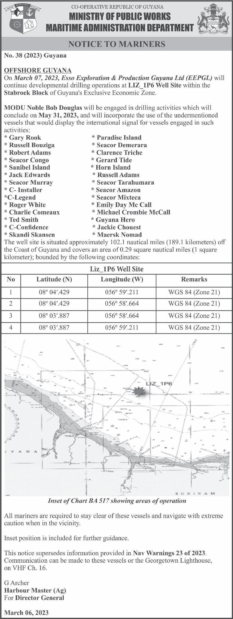 EEPGL has also said it will use proven and good international industry p r a c t i c e s a n d h a s i n c o r p o r a t e d m a n y embedded controls into the overall project design to reduce environmental and socioeconomic impacts Kaieteur News understands that it could take several years to drill the wells, currently scheduled from the third quarter of 2023 through 2028.