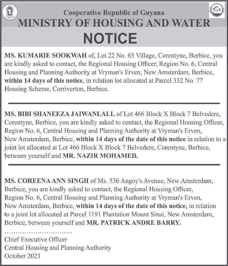 Properties in Subryanville, Peter's Hall, Ogle, Bel Air and Better Hope. Call Ray's Realty: 627-9685.