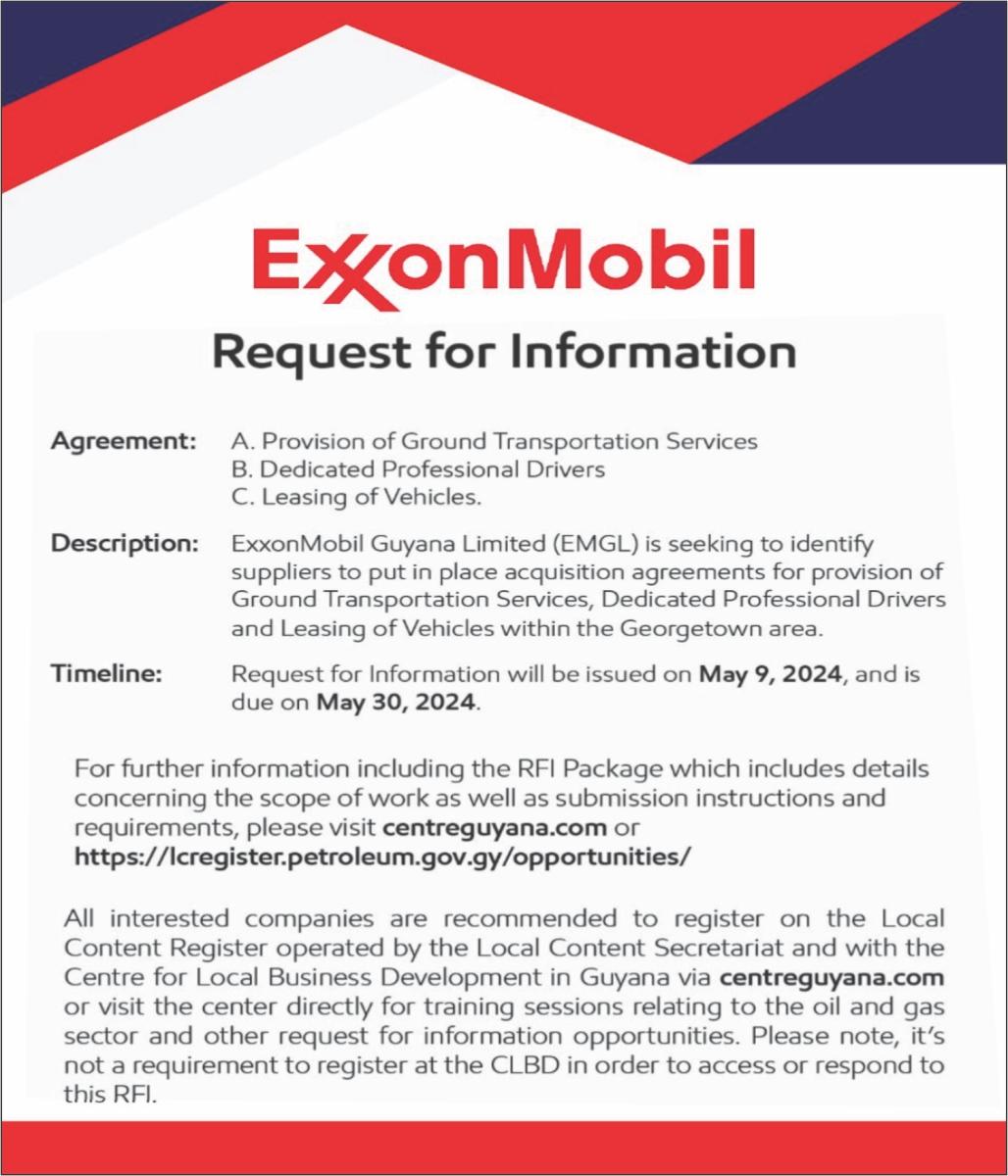 The High Court in May last year ordered Exxon to provide the unlimited parent company guarantee, following a legal suit by two Guyanese men, Godfrey Whyte and Frederick Collins. The ruling has been appealed and is presently ongoing.