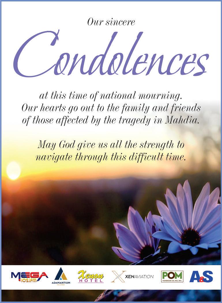 The Council, Executives, Sundaynight. #PrayForGuyana Our thoughts May the souls of all lives lost in Management and Staff the Leading tributes was and prayers are with the families this tragic fire rest in peace, and Caribbean Examinations Council CARICOM Secretary-General, Dr and people of Mahdia. We express may their memories be a source of (CXC) also offered heartfelt Carla Barnett, who in extending our deepest sympathies for those inspirationforasaferfuture. condolences to the Government sincere condolences to the beautiful children who perished in The Guyana Press Association and people of Guyana on the Government and people of Guyana the fire last night. Best wishes for a (GPA) also joined the nation in passingof19students.“Thelossof said the “CARICOM Community speedy recovery to those who were mourning the tragic death of these young people with such has received with great sorrow the injured ” Canadian High several students of the Mahdia bright potential is shocking and shockingnewsofthefireatthehigh Commissioner Mark Berman in a Secondary School in their painful.We pray at this time for the school in the Guyanese town of terse statement expressed deepest dormitory on Monday “Our survivors and family members of Mahdia.” She added: “We mourn condolences to the parents and thoughts remain with the families those students whose lives were with the families, friends and families of those who died in the ofallaffected.TheAssociationalso lost,”CXCsaid. rest in peace and rise in glory,” communities who are impacted by fire. wishes speedy healing and Also offering condolences was GPSU said. “The Guyana Public this horrifying event. “On behalf of Intheirtribute,theGovernment recovery to the children injured. the Guyana Public Service Union. Service Union (GPSU) conveys its CARICOM, I extend sincere andPeopleofGrenadasaidtheyare The GPA takes this opportunity to “The trauma on the families, condolences to the bereaved condolences to the Government deeply saddened by the news of the remind members of the media of relatives and friends of the families, relatives, friends, and the and people of Guyana. “We pray a tragic dormitory fire. “Our hearts international guidelines for deceasedissharedbyusall.Theill- entire Mahdia community, hoping speedy recovery for those injured go out to the entire community of reporting on trauma, and the fated circumstances leading to the that the Almighty that took their and otherwise impacted and offer Mahdia,especiallythefamiliesand guidelines for the use of images of demise of these children is a lesson children from the trials of mankind the support of CARICOM Member loved ones who will be eternally minors as well as those affected by that would ensure that there should would grant them solace, strength States as the community returns to affected by this devastating tragedies,” the statement read never,everagain,bearecurrenceof and courage. GPSU prays that the normalcy “Our thoughts and incident,” Prime Minister, Dickon According to the GPA, the media this kind.Asmall nation in need of Government of Guyana, Regional prayers are with you at this time of Mitchell lamented. “We extend our remains critical to the its peoples, but carelessly Administrations, Education unimaginable loss,” the Secretary- deepest condolences during this dissemination of information in surrenderingthelivesofsomanyis Departments, among others, use Generalsaid. time of profound grief and loss.” any tragedy of this nature, but we but an abomination. Guyana can ill the circumstances of this horrific
