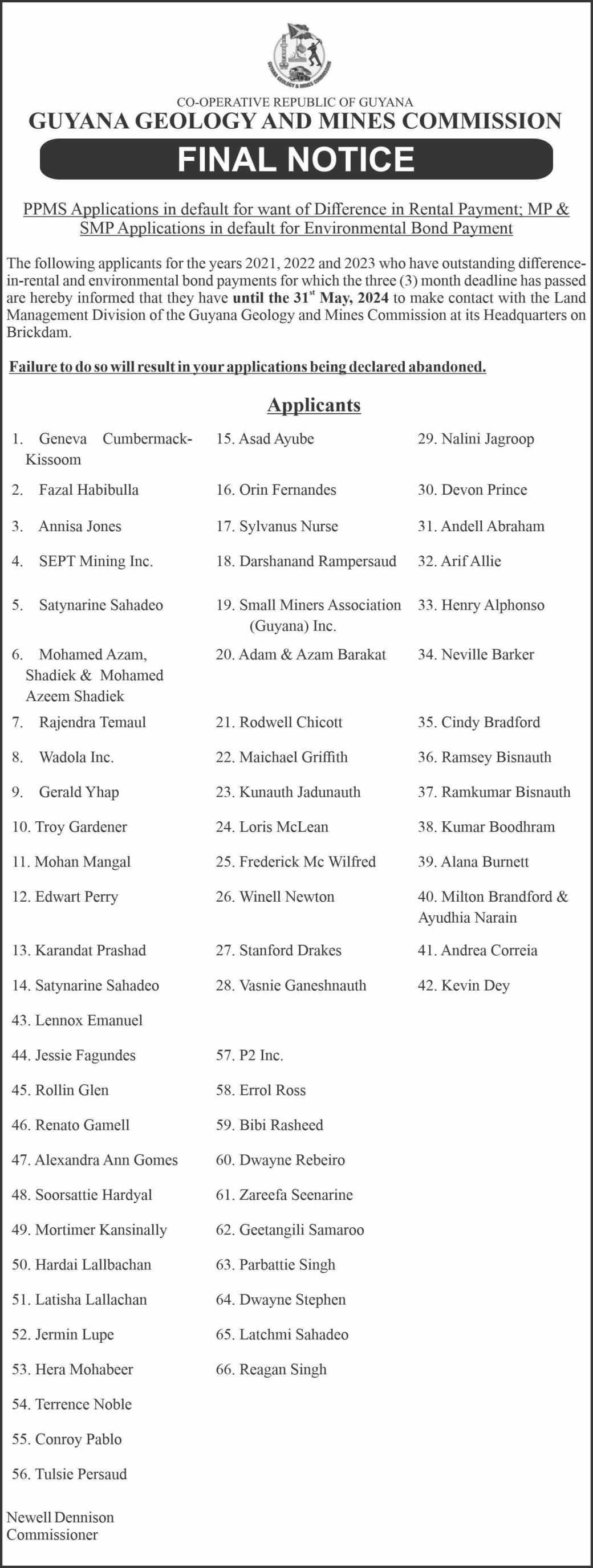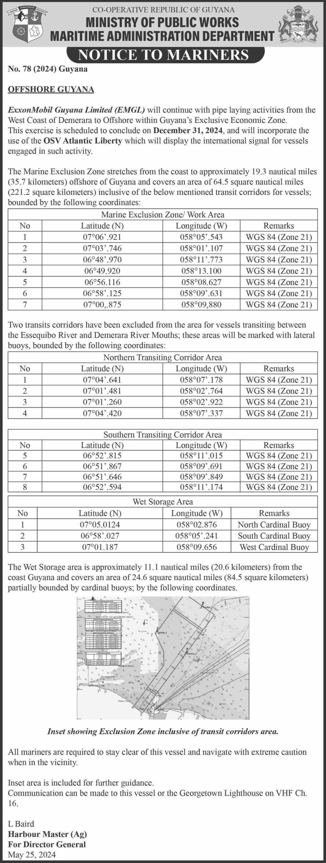 measuring 26,800 square kilometers. On April 13, 2023 during a press conference at FreedomHouse,Georgetown,Vice President Bharrat Jagdeo told reportersthatgovernmentreceived the final report of the US$7.3B audit of the company’s expenses, relativetotheperiod2018to2020. Annex ‘C’ of the contract