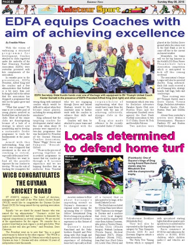 EDFA equips Coaches with aim of achieving excellence By Franklin Wilson With the vision of embracing a structured p r o g r a m m e f o r development, Coaches attached to clubs registered under the umbrella of the East Demerara Football Association (EDFA) were yesterday presented with kits compliments of the association. In remarks prior to the p r e s e n t a t i o n , E D FA President, Alfred King told the coaches and a few administrators that football is a bit more than just kicking the ball to the extent that the association has designed a programme that will see the game grow and develop. ”What that means? We want to see a wider pool of young players involved in football that can feed into the clubs. Most of the senior clubs are disintegrating because of a lack of a strategy to attract new membership and to develop a sustainable feeder programme to teach the fundamentals at the junior level.” Armed with this understanding, King said that it was recognized that investment in the area of coaching is critical, especially at the junior level. “Therefore we want to find all the possible exposure for our coaches to develop. We run the risk of teaching the youngsters the