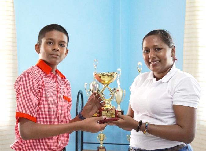 Abigail Jairam (left) emerge Best Female player in SEN Chess Tournament.