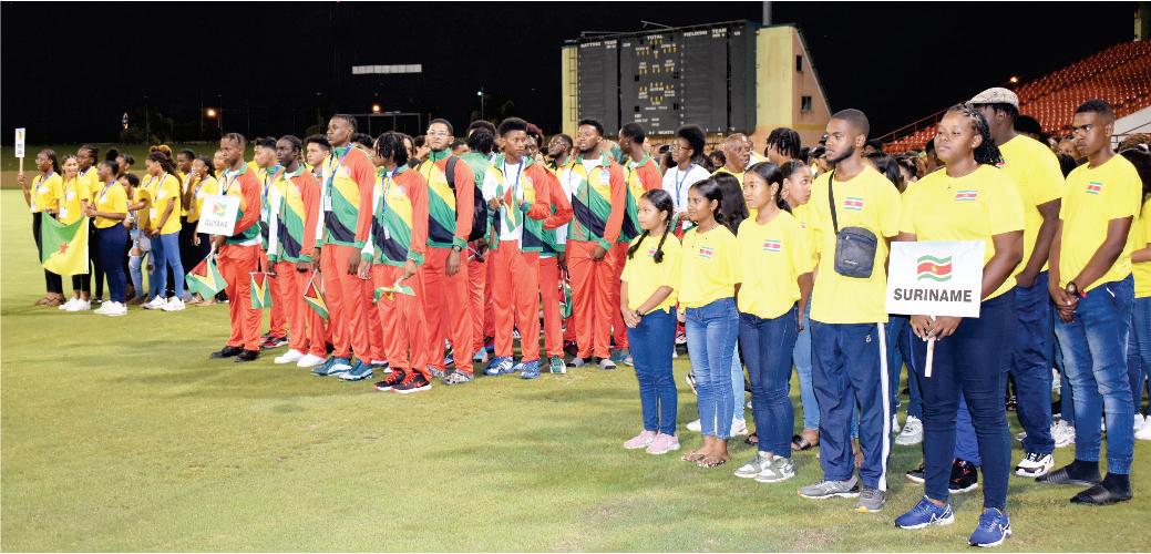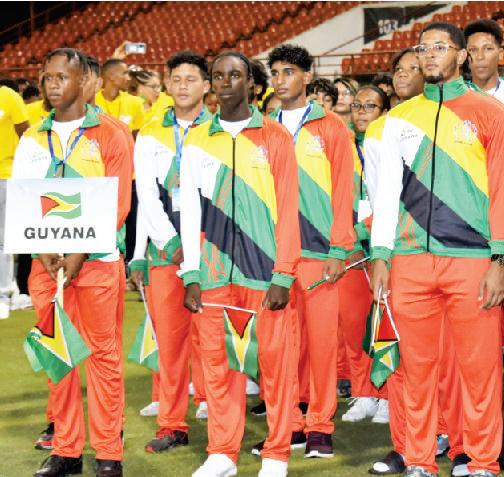 Athletes from Guyana’s contingent at the opening ceremony of the IGG at the National Stadium. (Rawle Toney photo)
