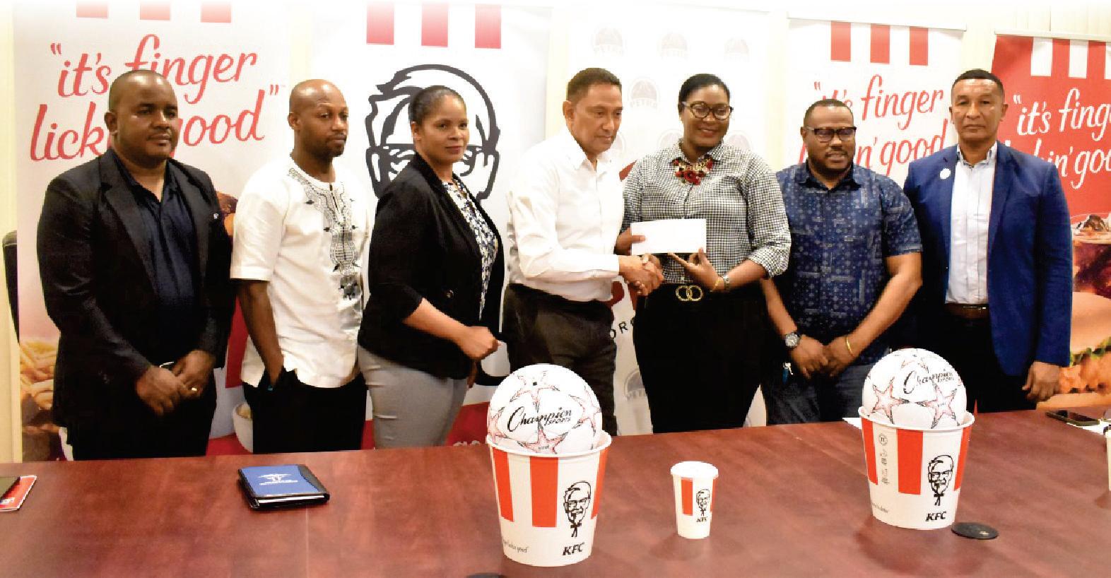 The third edition of the youths are at the school KFC Goodwill Tournament competitionstage. wasofficiallylaunchedatthe Meanwhile, Manasseh sponsor’s head office on said, “On behalf of Beharry Vlissingen Road, yesterday, restaurant holding, KFC and is set to kick off on Guyana is pleased to take December 14 at the Ministry part in this occasion for the of Education Ground, third time This contest CarifestaAvenue. amplifies everything our W i t n e s s i n g t h e company stands for, it’s not significant ceremony were only to aid in the athletic KFC’s Marketing Manager development of our youths Pamela Manasseh, Petra but to also impart valuable Director Troy Mendonca, life lessons like how we get NSC Chairman Kashif along with others. We are Muhammad, Allied Arts thrilled to be a part of this Physical Education Officer event and we wish the (Waramadong) Secondary Kurt Braithwaite and participantstheverybest.” School, Trinidad and Guyana Football Federation The supportive entities, Tobago’sSecondarySchools (GFF) Public Relations Ministry of Culture, Youth Football League (SSFL) Officer,KeeranWilliams. and Sport, NSC, GFF and Champion, St Benedict’s Mendonca was very Ministry of Education College, and SVB Academy appreciative of all the disclosed that they were outofSuriname. entities involved in getting adamant in partnering with
