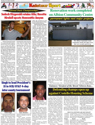 Renovation work completed Sudesh Fitzgerald retains title; Rosetta on Albion Community Centre National Darts Championships...