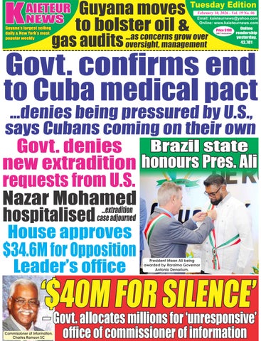 Guyanese reality is of both political groups, PPPC and APNU+AFC,delightinginhurlingcursesandaccusationsat theother,onlyforittocometolightthatwhattheydenounce theotherfordoingwiththetaxpayers’money,theyaredoing also. ItisthesameoldGuyanaGovernmentstoryofmoney budgeted, areas and projects identified, and billions of dollars spent and, with the regular result surfacing later of how tricking and deceiving and cheating of the Guyanese public continue unabated. The season of Government corruptioninGuyanaisuninterrupted. ItmaybeaPPP/Cor anAPNU+AFCGovernment,butthereisonepowerfuland widespread ingredient that speaks to the same thing of the twogroupswheningovernment:bothstealfromthepublic treasury They betray the public trust, violate the law, and stillliverichlyandhappilyeverafter Theseareconstantsin Guyanawhentaxdollarsareinvolved.Twonewsarticlesin thisnewspaperaresufficienttoshedplentyoflightonhow corruption operates in this country As embedded in the AuditorGeneral’sReportfor2021,theNewGPCreceived overGY$7Bincontractstosupplymedicalproductstothe MinistryofHealth.