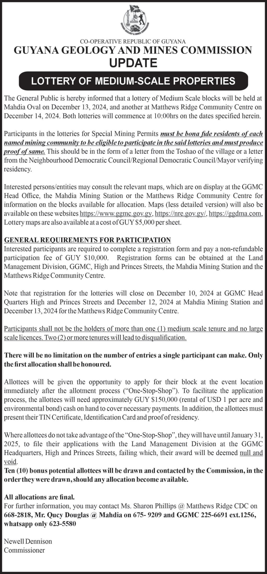 Patterson’sclaimfollows Thursday’s announcement by Vice President Bharrat Jagdeo that the loan was approved Jagdeo told reporters that the loan was approved and was with the U.S. Congress for a 30-day period commencing November21,2024.