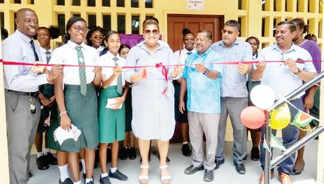 ceremony at the Lower Corentynesecondaryschool with Minister of Finance doctorAshniSinghandlocal government minister Sonia Paragasspecialguest.