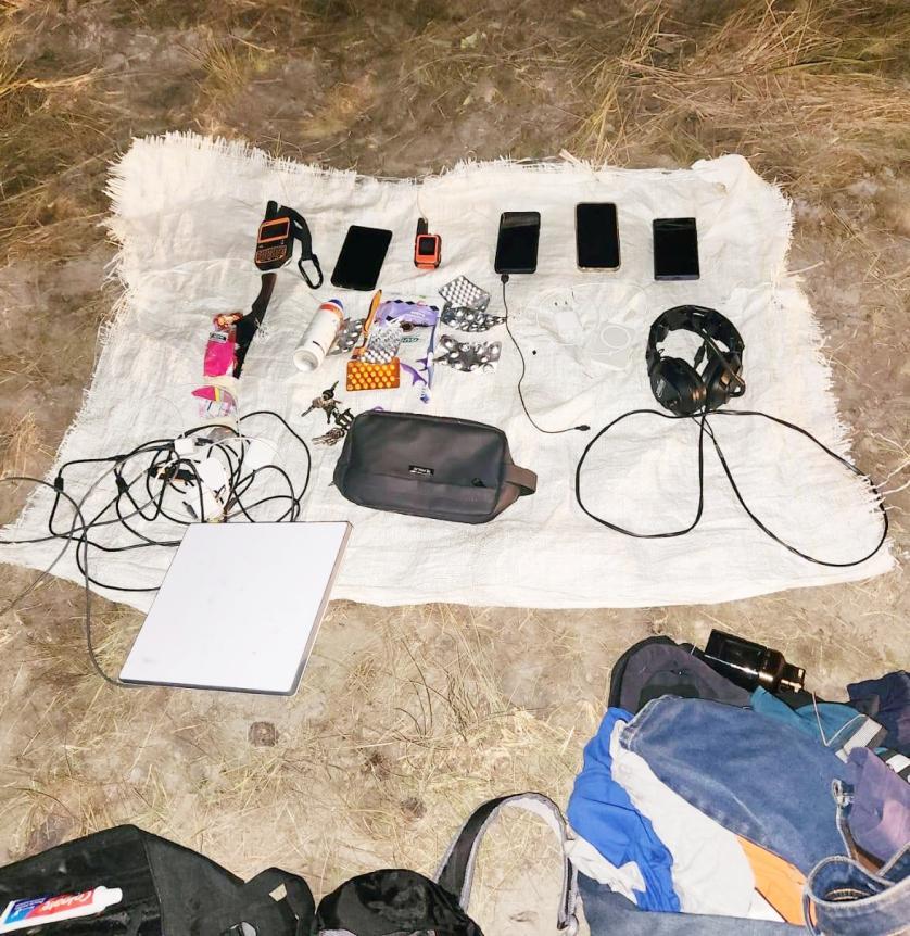 A search of the plane revealed one iPhone 13 Pro Max, one Samsung Galaxy S24 Ultra, one Samsung Galaxy A03, one Tracker phone, two Garmin GPS devices, one pair of earbuds, one wireless charger, several phone cables, a quantity of male clothing, two black haversacks.