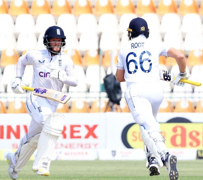 FellowYorkshiremanHarryBrookwas batting on 141, a fine knock that followed BenDuckett’squick-fire84earlier Pakistan’s bowlers were unable to extract any help from the flat pitch at the MultanCricketStadiumandwerewrestled intosubmissionbyEngland,whohadtoiled onthefirsttwodaysofthematch.