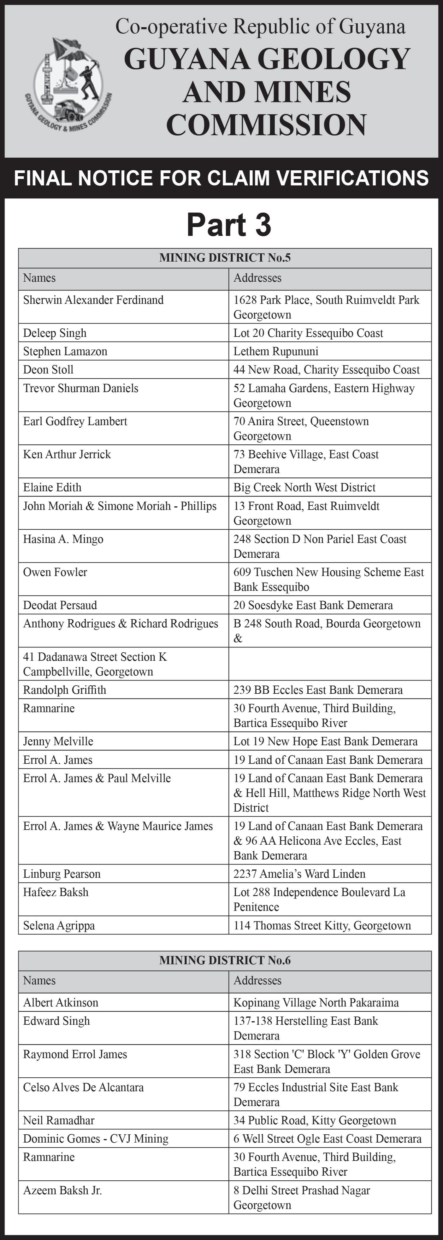 PrintedandPublishedbyNationalMedia& PublishingCompanyLtd. 24SaffonStreet, Charlestown,Georgetown,Guyana.