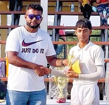 Albion defeated Rose Damion Cecil added 30 for Guyana Under17 Vice over A well played innings Jawahir was named Man of Emphasis would be placed Hall Town Bakewell by the second wicket before Captain Matthew Pottaya of 44 from Pottaya the Finals for his match on senior cricket at the ninety four runs to lift the Cecil was bowled by took a wicket a piece for 30 eventually led his team to winninginningsof55. second and first division Berbice Cricket Board Kolmanchand Ramnarace and21runsrespectfully 115 all out from 37 overs as The winning team level, while the BCB would Under17 inter clubs for 7. Solid batting from Needing to score 210 he ran out of partners to stay received $70,000 and a also start the 2024 season tournament for 2023. The Afraz Budhoo 34(four sixes from their allotted 50 overs, withhim. NationalUnder15 trophy while the runner up early with the Under15 inter final was played at the and a boundary), Devin Rose Hall Town Bakewell wicketkeeper Sohail took home $40,000 and a clubtournament. breezy Cotton Tree Cricket Lallbehari16,Mangal28,A. lost opener Mario Butcher Mohamedwastheonlyother trophy The man of the Mr Roshan Gaffoor, an Ground in West Berbice, Jawahir 55 (2x6, 4x4) led caught off the bowling of N. batsman to reach double match received a trophy and employee of Ali’s Bakery, home of the Tournament Albion to a solid 209 all out Isphikfornoughtat4for1in figureswith10. cashprize. expressed gratitude to the sponsor,Ali’sBakery in49.4overs. thesecondover Bowling forAlbion were Chairman of the BCB Berbice Cricket Board for Albion won the toss and Bowling for Rose Hall Nelroy Hicks was then Kumar Deopersaud with 3 Competition Committee organizing an excellent elected to bat first in sunny T o w n B a k e w e l l , run out for 10, while Guyana for 17 from 6 overs, Feaz Leslie Solomon stated that tournament. c o n d i t i o n s T h e y Kolmanchand Ramnarace 5 Under15 player Ramzan Baksh 1 for 14 and the board was proud to Gaffoor encouraged the immediately lost Ari Kadir, for 54 from ten overs, while Koober was also run out for Tameshwar Mangal 1 for 15 successfully complete players to remain focused run out for nought but Deeraj Ramjit claimed 2 13 as Rose Hall Town was from 6.3 overs as several another youth tournament and congratulatedAlbion on th Tameshwar Mangal and wicketsfor38. RajTikaand reduced to 30 for 3 in the 6 Rose Hall Town Bakewell and would now work on awelldeservedvictory