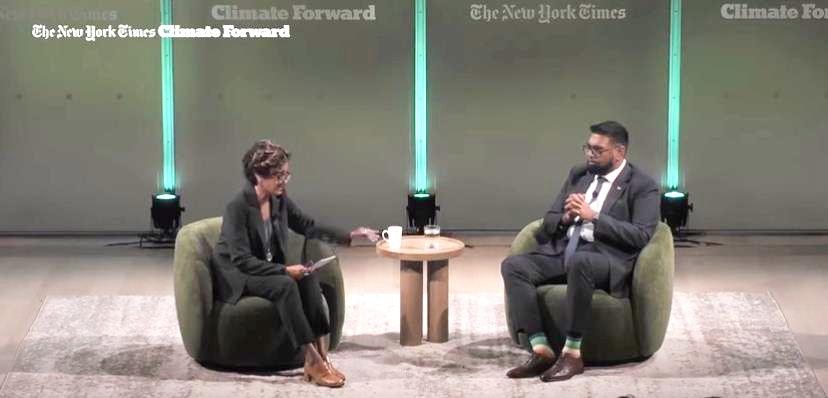During an interview at theNewYorkTimesClimate Forwardevent,international climate correspondent Somini Sengupta asked President Ali to address criticisms from Guyanese citizensregardingtheExxon