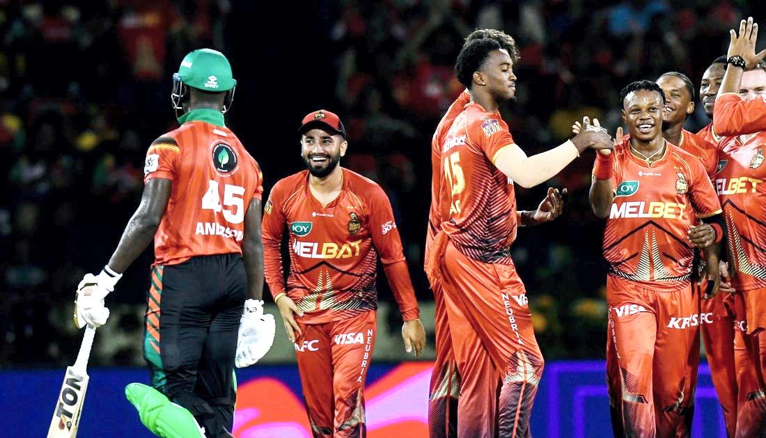 Riders (TKR) upset defending champs Guyana Amazon Warriors by a whopping 74runmarginlastnight,aftera mind-boggling hundred from Nicholas Pooran, coupled with a barrage of wickets between spinner WaqarSalamakheilandfastbowler Terrance Hinds, silencingacapacitycrowdat Providence.