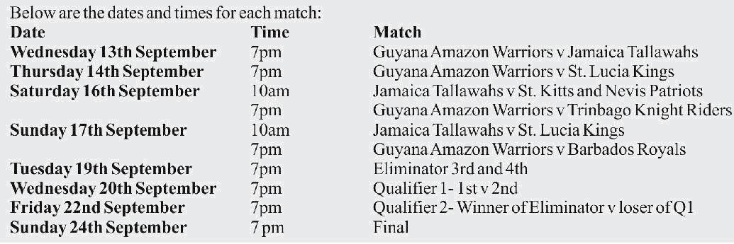 Please be informed that Carriageways between Guyana will be hosting six Bagotstown Public Road to (6) exciting Caribbean Providence Public Road in Premier League (CPL) the vicinity of Rubis Gas cricket games (Group Stage) Station. as well as two Qualifiers, an · Patrons are advised to Eliminator and the Final. purchase tickets for parking The games will take place at prior to game days to reduce the Guyana National interruptionsintrafficflow Stadium. · Carpooling and rideTrafficArrangements: sharing are encouraged to