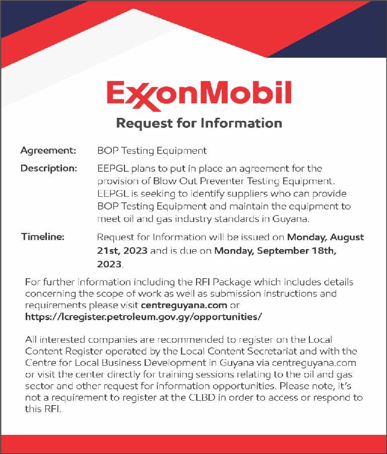 Kaieteur News Editorial (“Opposition goes to ExxonMobil” - 14/9/2023) praises the Leader of the Opposition Aubrey Norton for recently declaring to the company as follows: “We have also indicated to them thatourinterestliesinensuring theGuyanesepeopleobtainas muchasispossiblefromtheoil and gas sector and that while we see the importance of investmentinGuyana,wealso see it as important for the Guyanesepeopletobenefit.”