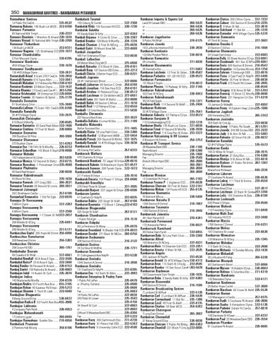 28 Henrietta Ebo .................................... 771-5067 Rambaran Lutchmin 13 First St Gblan .. 326-0587 Rambaran Parbattie 161 LBI HS ECD ... 220-0573 Rambaran Parmawattie 131 Block F Sophi .................................. 219-0613 Rambaran Pheona 10 Railway St Kitty . 227-7146 Rambaran Rabindranauth 322 East St NCbrg ................................ 226-4842 Rambaran Rabindranauth 352 A Field Sophi ................................... 219-1271 Rambaran Rishi 114 Second St AlxVl .... 225-7494 Rambaran Rishiram 33 #73 Village Ctyne ............................ 335-3561 Rambaran Sabeeta 67 Palmyra ECnje .. 332-0572 Rambaran Sarojanie D 110 Goedverwagting ECD ....................... 222-1316 Rambaran Sheila 145 Bush Lot Ctyne ... 331-0839 Rambaran Timal 67 Second St MonRp .. 220-7039 Rambaran Vimal 114 Cow Pen St Ecles . 233-3377 Rambaran Vulcanising & Off Licence 9 Blossom HS Enmre ............................ 256-3752 Rambaran W Transport Service 28 Meadow Bank EBD ............................ 226-1100 Switchboard ......................................... 226-5380 Managing Director ................................ 225-1460 Fax ....................................................... 226-7540 Branch Office Hope EBD ......................... 266-2900 or ......................................................... 266-2901 Managing Director ................................ 266-2694 Fax ....................................................... 266-2699 Rambaran Winston 13 Greenfield Pk Provd .......................... 265-7183 Rambaran Yvonne P 1 Vigilance ECD ... 274-0928 Rambarose Chetram 58 First St Belvd . 322-3191 Rambarose Mohan 134 Foulis HS ECD . 255-0125 Rambarose Nanmattie 70 Belmont Mhica ................................. 228-5409 Rambarose Natasha D 1360 Section B Dimnd ........................... 216-1867 Rambarose Taramatie 1360 Section B Dimnd ........................... 216-2440 Rambarrack Jaiwattie 401 Non Pariel ECD ............................... 270-4241 Rambarrack Parmanand 172 Ankerville PMrnt ............................ 336-6021 Rambarrack Ramchand 203 Koker Dam Fyrsh ............................ 322-0455 Rambarram Bebi 82 Line Path Crton ..... 339-3360 Rambarran Alfred 160 Waterloo St NCbrg ......................... 227-4931 Rambarran Alvin 10 Oleander Gdn ECD .. 222-2251 Rambarran Aneeta 8 Main St NA ......... 333-2925 Rambarran Angela 230 Jackson St RepPk ........................... 233-6530 Rambarran Arnold 25 #72 Village Ctyne 338-4313 Rambarran Aron 115 Sixth St CmLdg ... 222-0595 Rambarran Basdeo 10 San Souci Can#1263-5678 Rambarran Baydewan 123 Government Com Trmph ................. 220-1835 Rambarran Bebe 3 Sandy Babb St Kitty 227-0203 Rambarran Bissoondai 548 Section B Dimnd ............................. 216-1586 Rambarran Broadcasting System 7 Lombard St WRust ............................ 223-5120 Rambarran Carl 3 Lombard St WRust ... 226-5429 Rambarran Carmachand 11 Bel Air ..... 225-1296 Rambarran Cecil 49 First St AlxVl ........ 223-8135 Rambarran Charles 58 Best WCD ........ 254-0243 Rambarran Chatergoon 7 Long Dam Dimnd ................................ 265-2687 Rambarran Chemanlall 21 Betsy Ground ECnje .......................... 326-0038 Rambarran Chetram E Public Rd Blnbg . 269-0262 Rambarran Chunilall 221 Block Y CmLdg 222-0895