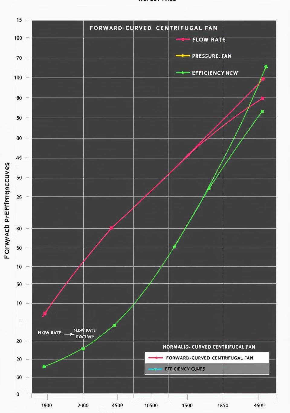 The curves for an FC fan have a different shape compared to BI fans. These curves illustrate the unique performance characteristics of forwardcurved fans, which typically handle large volumes of air at lower pressures.