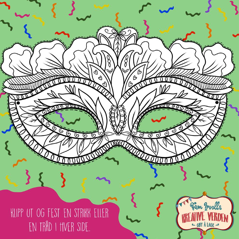 6 ark med tilbehør/pynt til å fargelegge, klippe ut og lime på maskene