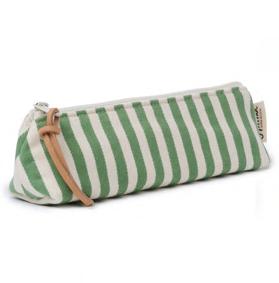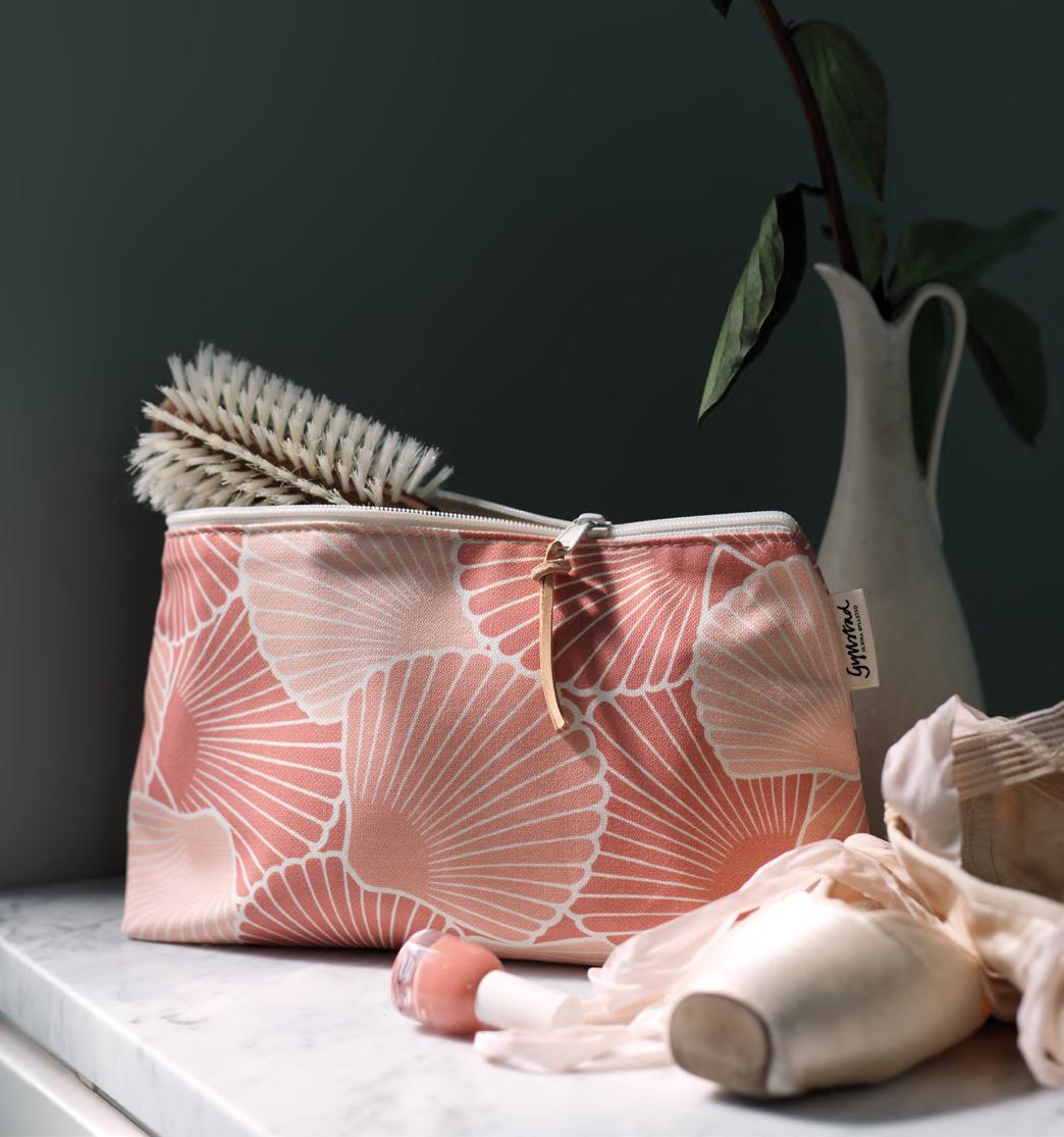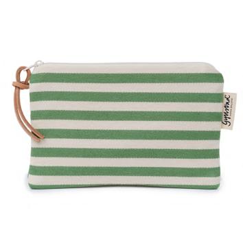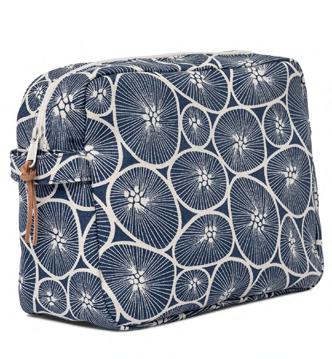 Made from 100% GOTS-certified organic cotton. Lined. Natural leather strap puller at zipper.