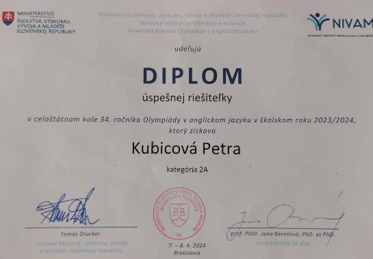 Srdečne blahoželáme a ďakujeme za reprezentáciu nášho GYMY.