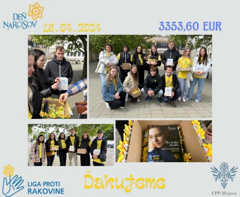 18. apríl 2024 sa niesol v znamení žltej farby narcisov na podporu všetkých, ktorí čelia zákernej rakovine. Zakúpením tohto jarného kvietku dobrovoľnou čiastkou každý vyjadril spolupatričnosť a podporu onkologickým pacientom. Finančnázbierkasavraciaverejnosti späť vo forme financovania programov a projektov na podporu onkologických pacientov i širokej verejnosti.