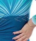 Maillot con mangas pico 3/4, cuello pico con combinación de: Lycra Fantasía Sublimada Lycra Cristal Sublimada con Brillantes AB y AZULES