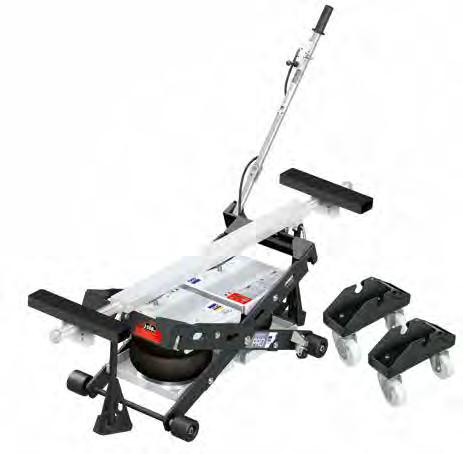 Hydro pneumatic pump, no electric supply needed - Pneumatic lift designed to lift the front or rear of the vehicle - Skates rotate the vehicle up to 360º