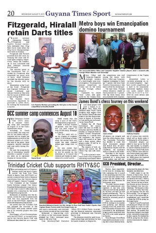 he Demerara Cricket Club (DCC) annual summer coaching camp will commence on August 10 at the Club’s Queenstown venue. According to Coach Garvin Nedd, the camp will last for two weeks and participants will be taught the fundamentals in terms of the technical aspects of cricket, the laws of the game, table etiquette, healthy lifestyles and road safety among other topics. He said the programme was of tremendous benefit whereby a number of players went on to represent Guyana at various levels.
